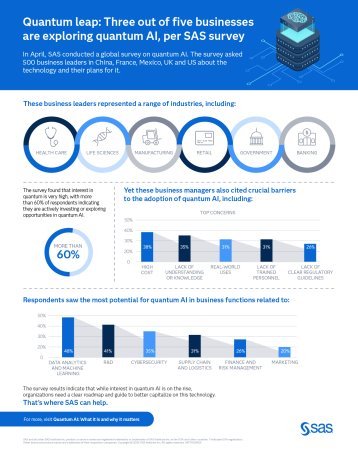数据与AI领域的领先者 SAS能够帮助破除这些障碍。通过与客户合作开展试点项目、携手量子计算领域的领先者进行量子AI研究,SAS 致力于为企业提供专业的量子技术应用指导。