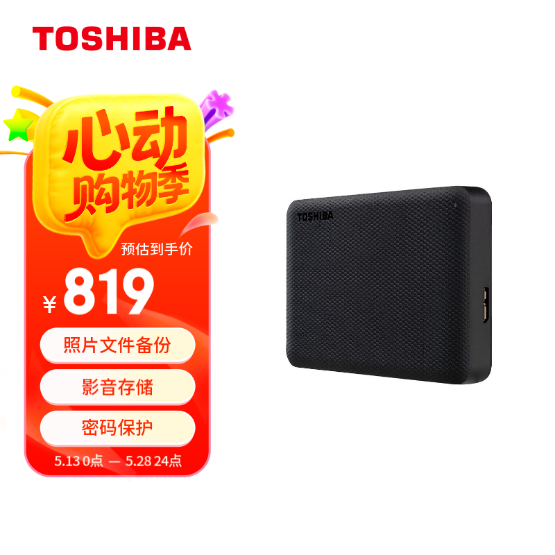东芝4TB墨黑V10移动硬盘京东优惠价819元