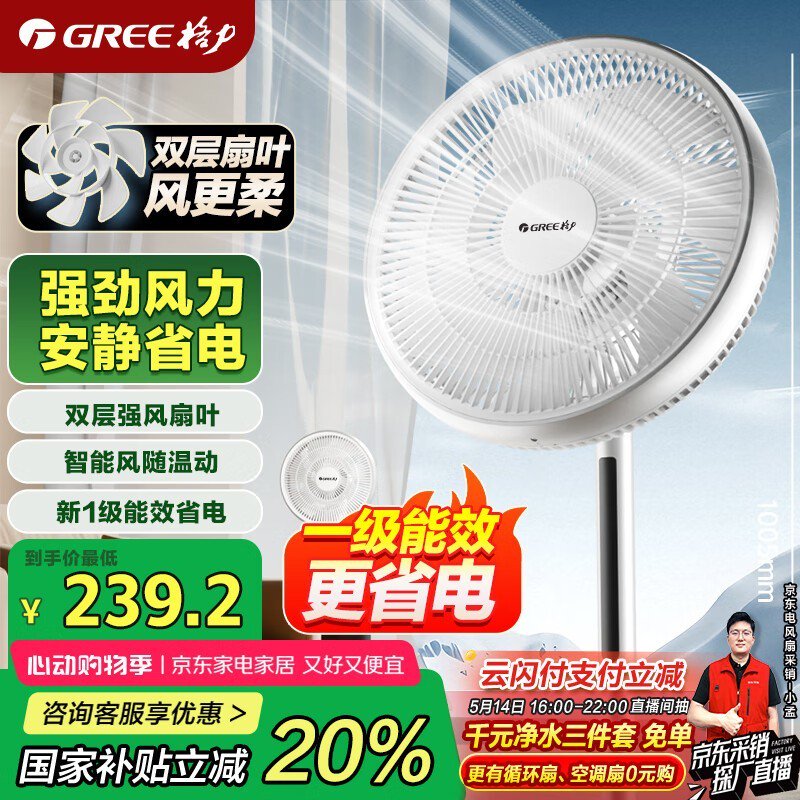 格力立式电风扇FSZ-30X65Bg7限时特惠173元