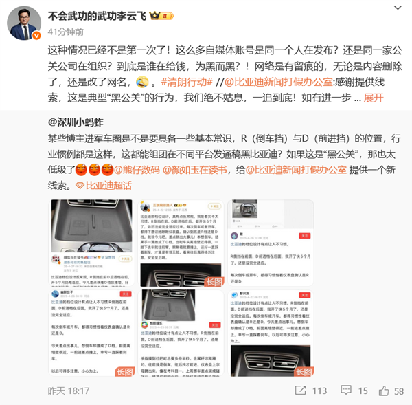 对此,比亚迪品牌及公关处总经理李云飞发文怒斥黑公关。