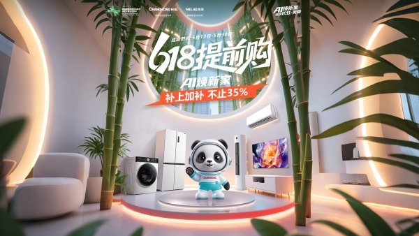 5月13日开启的本届618大促,长虹以"国宝·国货·国补"三维创新矩阵强势破局。长虹凭借大熊猫IP的文化势能,全面AI化的技术底座,以及"国家以旧换新+企业加码补贴"的政策红利,构建起从产品创新到消费体验的完整价值链条。