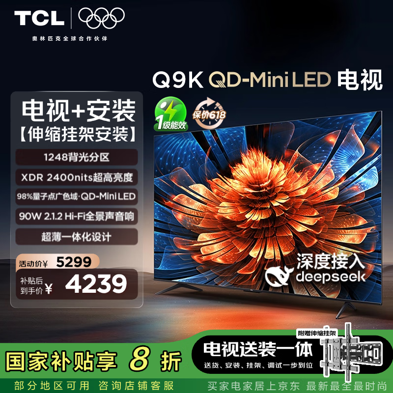 TCL Q9K 75英寸Mini LED电视京东优惠价3855元