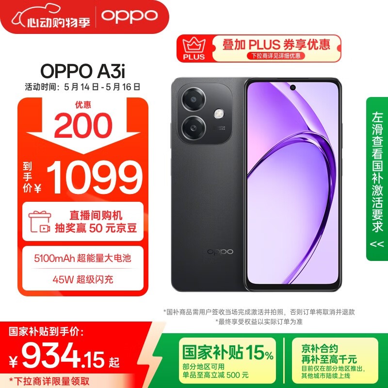OPPO A3i 5G手机限时直降200元