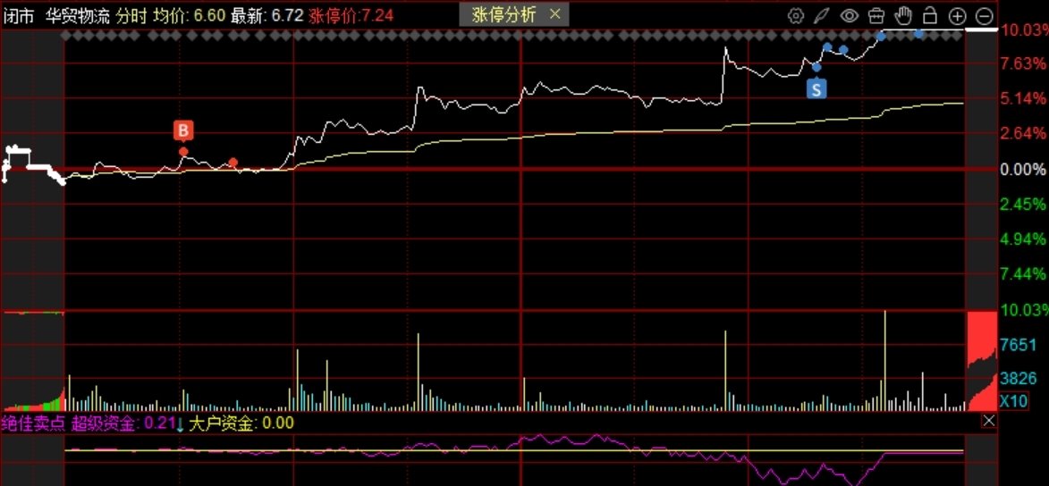 华贸我昨天卖了1.4成,今天又加进来2成多,接近涨停的时候开始出货,涨停板上出了一多半,剩余2.8成,明天看强度决定去留。