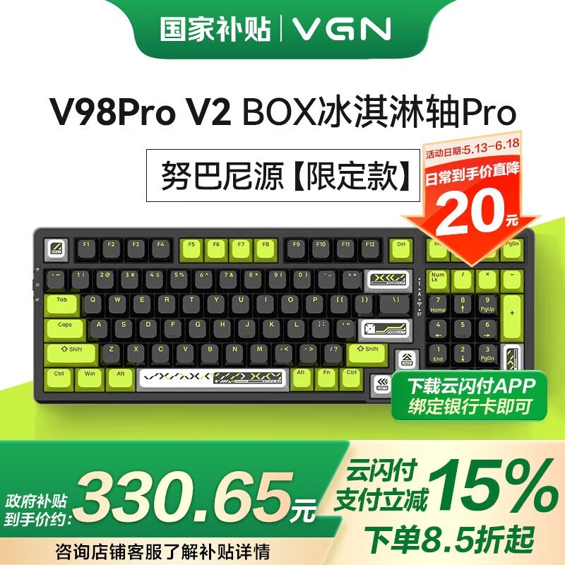 VGN V98PRO V2三模机械键盘限时优惠价389元