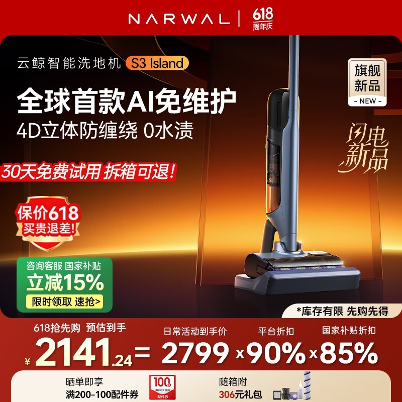 云鲸NARWAL S3 Island无线洗地机限时特惠1961元