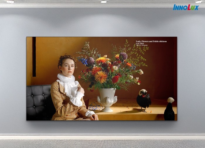 群创首创「85吋4K AI互动数字艺术显示器」,利用特殊的抗眩光层处理搭配抗反射层技术,可避免数字艺术显示器受环境光反射的影响,进而具有纸张般低反射、高散射的优异效果,观赏者可从不同角度清楚的观赏艺术画作。此AI互动数字艺术显示器透过智能AI互动功能,依据观赏者下达的声音指令,并串联AI运算模式,即可立即生成动态数字艺术画作,抢攻数字博物馆、商展广告、疗愈环境等智慧城市商机。