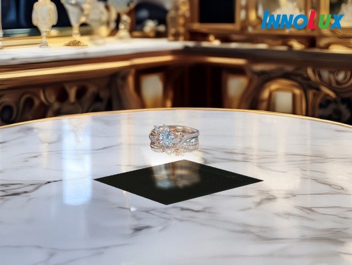 群创独家浮空影像技术创新展品「MicroLED浮空珠宝盒」,除支持非接触式手势感应技术外,亦可实时识别手势动作如拿取、旋转虚拟对象,更搭载超高亮度的MicroLED显示技术,其浮空影像亮度可达 1,500 nits 以上,以呈现优异的视觉表现。此展品技术将提供使用者更立体逼真、闪耀光泽的珠宝体验效果,其做为新兴的展示解决方案,更可延伸至珍稀品展示、博物馆展览、高端零售业等多元应用场域。