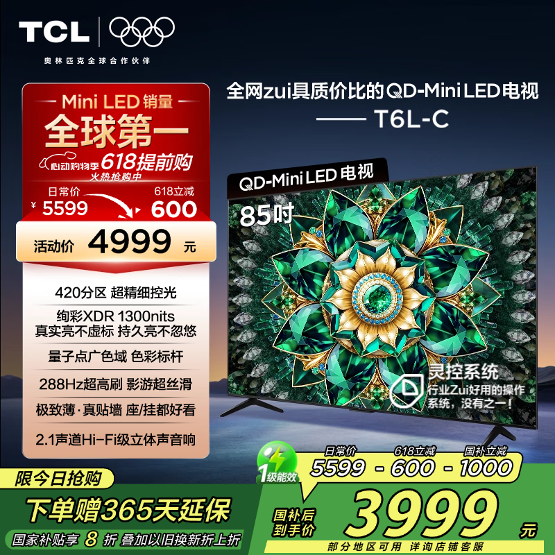 TCL 85T6L - C 85英寸4K电视京东价3703元