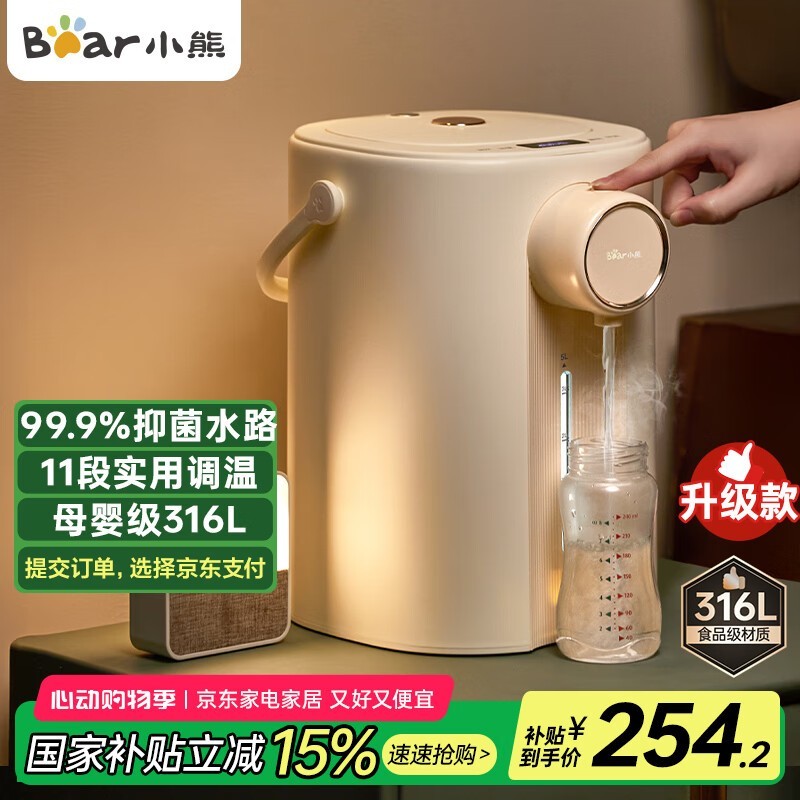 小熊5L恒温水壶316L不锈钢抑菌母婴安心