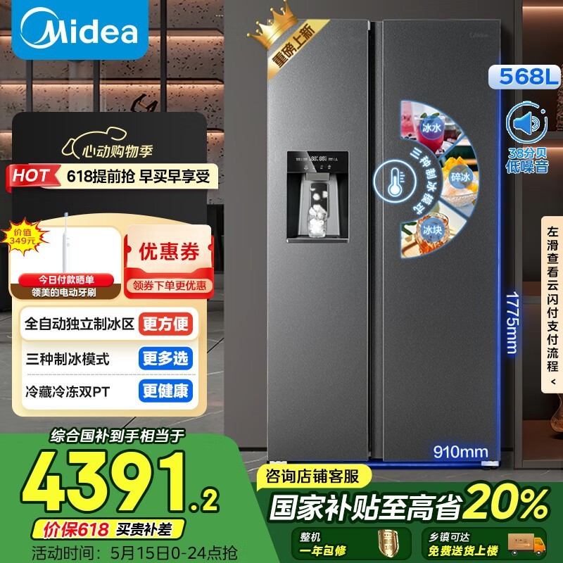 美的MR - 596WKIPZE 586L冰箱京东8.2折优惠
