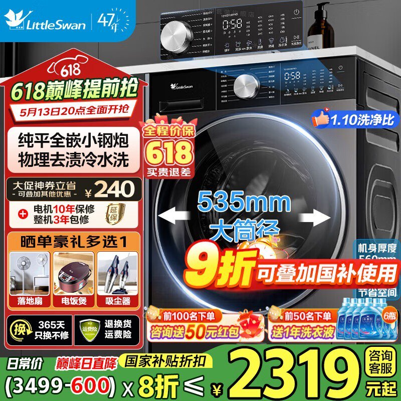 小天鹅滚筒洗衣机限时特惠1598元
