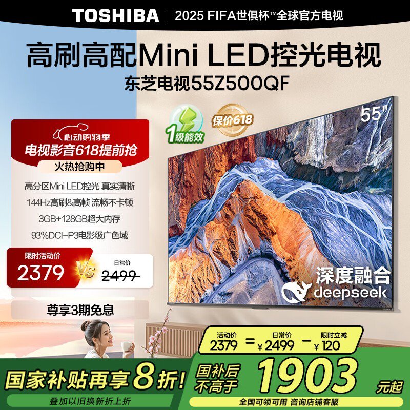 东芝55英寸Mini LED电视限时钜惠价1895元