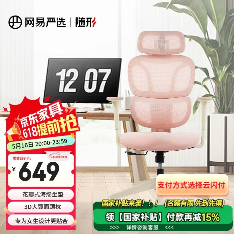 网易严选小蛮腰S9 Lady女生椅春云粉超值优惠