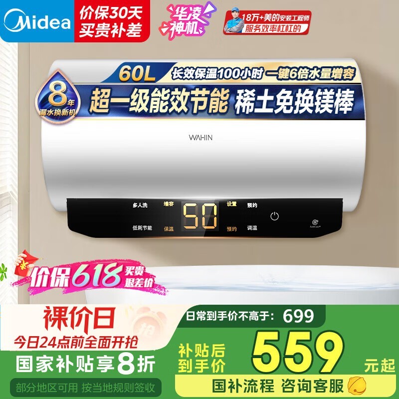美的60升电热水器超值优惠,到手价501元