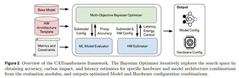 Meta 的 FAIR 团队与佐治亚理工学院联合推出的 CATransformers 框架,将碳排放纳入核心设计考量。该框架通过多目标贝叶斯优化引擎,联合评估模型架构与硬件加速器的性能,平衡延迟、能耗、精度和总碳足迹。