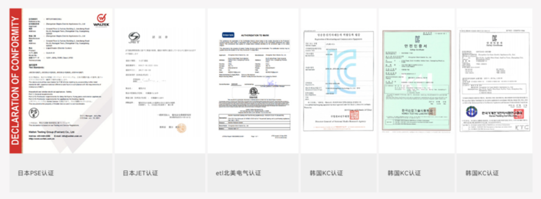 在超过11国获得安全认证,如日本PSE认证、etl北美认证和韩国KC认证等。连续多年通过IOS90001国际质量管理体系认证等一系列认证证书。