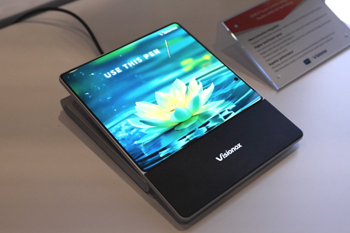 维信诺带来EMR(电磁笔)与电容触控的双重集成方案,有效减薄模组结构。此外,该方案能够解决折叠产品在使用传统外挂式EMR触控方案时,折叠区不带EMR触控功能的问题,实现全屏触控功能,且电磁笔尺寸更小,易收纳,无需充电,悬浮触控性能好。