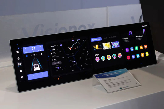 维信诺智能C型扶手柔性AMOLED解决方案,固态曲面角度130°,更贴合车内结构与驾乘需求。车规级触控芯片,触控灵敏且响应速度快,让交互智能与安全拉满。维信诺车载双联屏一体化柔性AMOLED解决方案,高品质的拼接工艺叠加搭载了一体化模组材料,双屏浑然一体;同时优化了“双屏一体黑”显示效果,色彩还原精准,画面细腻逼真。整机设计满足车规防水、防尘、震动等严苛测试。