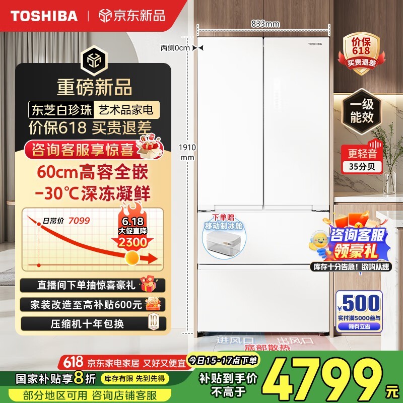 东芝白珍珠546电冰箱特惠4378元