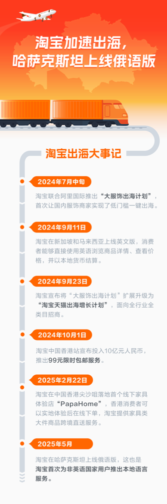 记者获悉,这是淘宝首次面向非英语国家推出多语言版本。使用更熟悉的语言购物,显著提升了海外用户的网购体验与消费意愿。淘宝内测数据显示,俄语版上线一周后,淘宝哈萨克斯坦站超70%的新用户首单均来自俄语用户,新用户订单转化率较此前增长了47%。