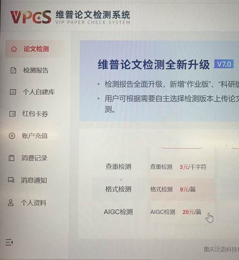 蓝鲸记者查询发现,知网、维普、PaperPass等网站均推出了AIGC检测服务。其中知网AIGC检测为2元/千字符;维普则为一口价20元/篇;PaperPass则为“查重+AIGC检测”的打包定价1.5元/千字符。