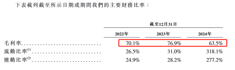 聆讯资料集显示,德镁医药2024年毛利率从上一年76.9%下降至2024年63.5%。