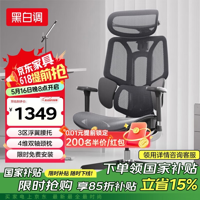 黑白调E3结构大师Air人体工学椅限时特惠