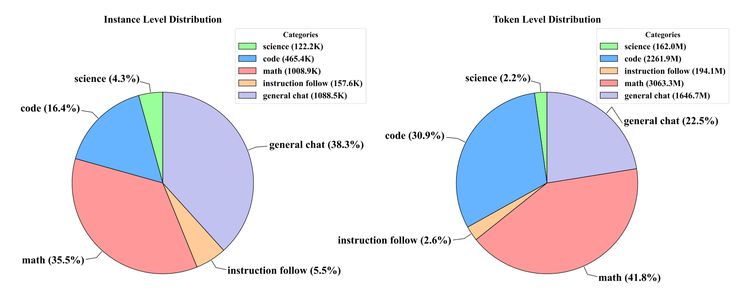 其次在数据这块,团队完全依靠开源资源,从数学、代码、科学推理到指令跟随和通用对话,总共整理出了五类核心任务的数据。