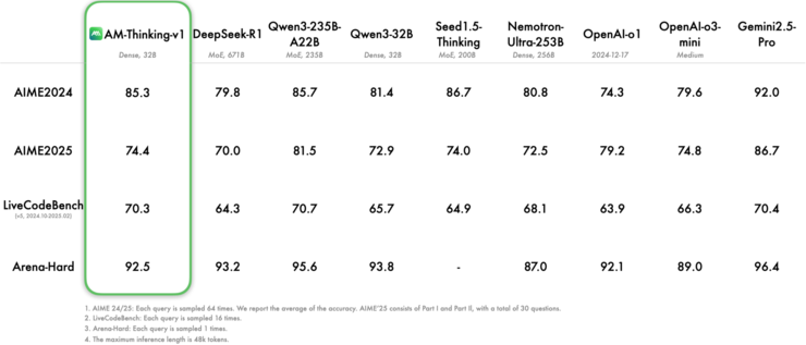 AM-Thinking-v1 模型测试得分表