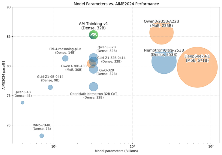 A-M-team 选择反其道而行之,专注在 32B 这一“中尺度模型”的参数区间,其实背后也有有着明确的考量:他们想探索一种在计算资源可控、数据完全开源的条件下,也能实现强大推理能力的路径。