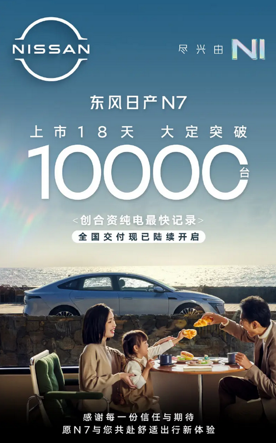 5月15日,东风日产官方宣布N7正式开启全国交付。