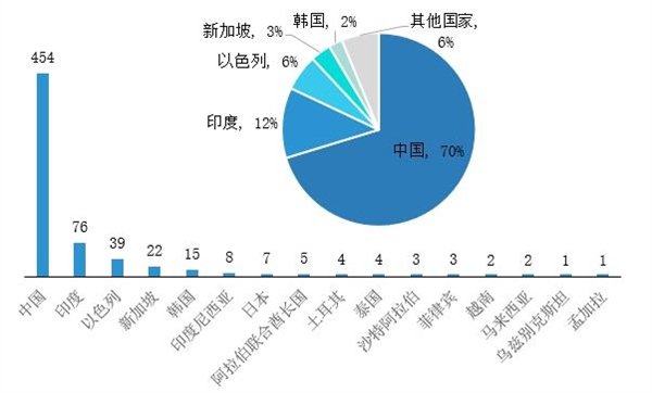 值得关注的是,中国的独角兽数量居第一位,达到454家,占亚洲独角兽达七成;其次为印度,数量占比为12%。
