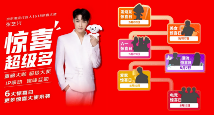 今年京东618全新打造六大惊喜日。从5月22日至6月12日,发烧友惊喜日、美食惊喜日、六一惊喜日、潮流惊喜日、爱家惊喜日、电竞惊喜日将纷至沓来,邀请大牌明星、重磅IP联动,为不同兴趣爱好的消费者带来好玩有趣的活动和多轮超级大奖。