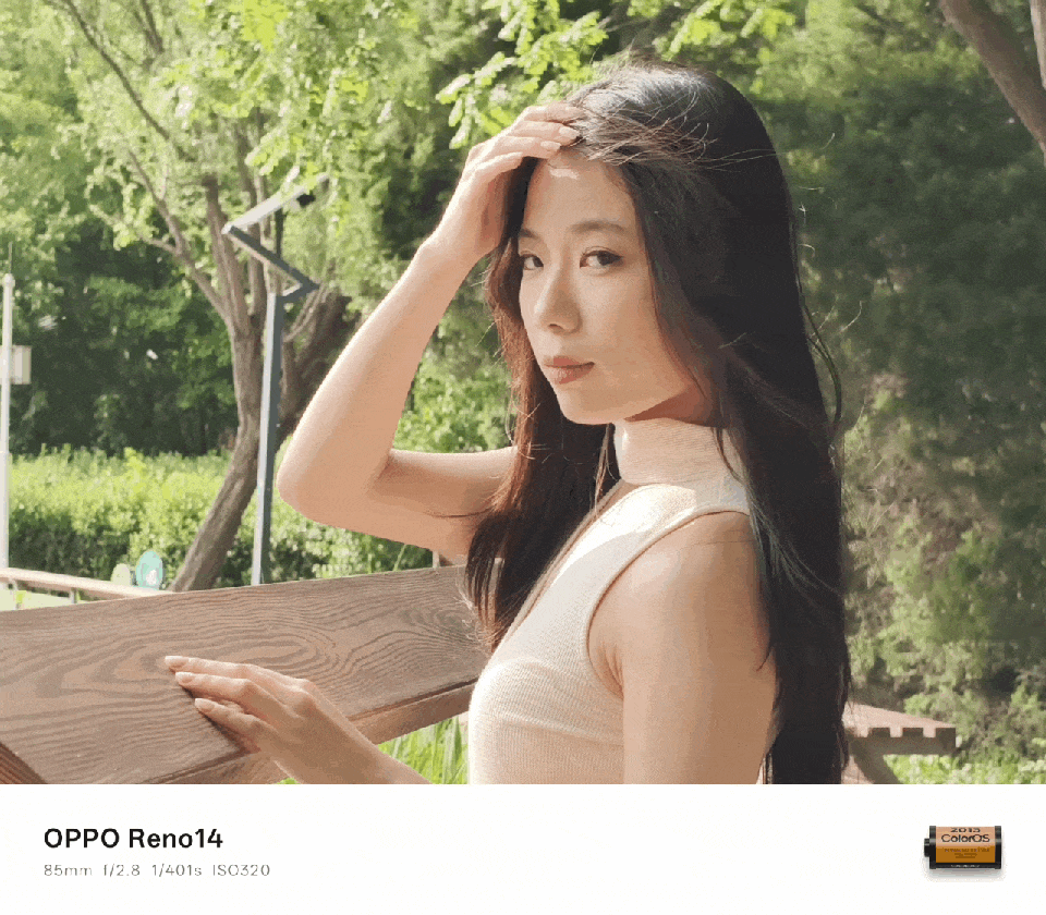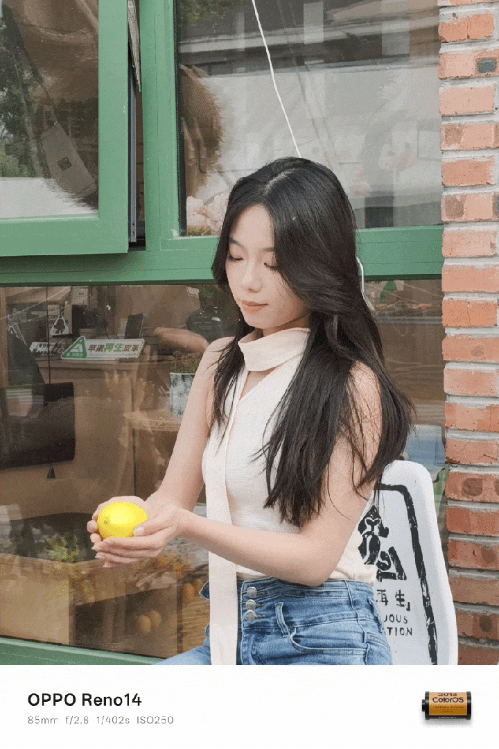 上图分别是OPPO Reno14在相同场景下拍摄实况照片、人像模式后拍出的样张。85mm焦段是备受摄影爱好者赞誉的人像焦段,不仅能捕捉到丰富的环境元素,又能有效地突出主体。