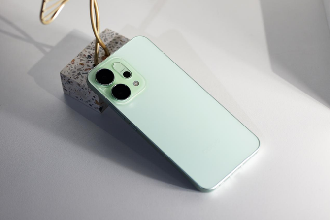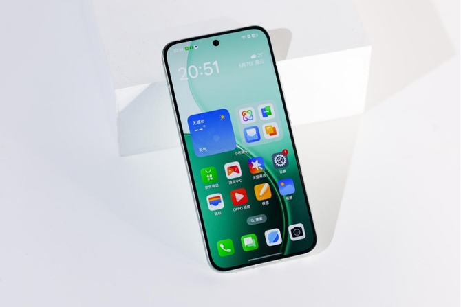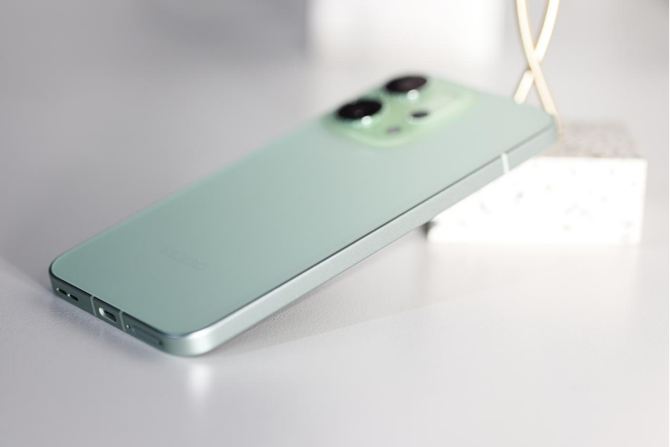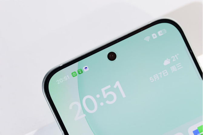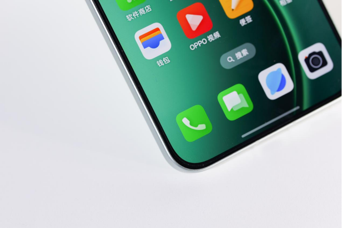 本次的我们还拿到了Reno14的半夏绿配色,这款配色非常清新,并且边框也和背板做了同样的清新绿色处理,整个手机的背板和背板做到浑然一体,细节的完成度非常高,在质感这块还是不得不佩服OPPO的功力,功夫下的超级足。