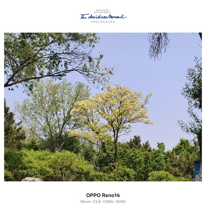 影像部分的话,这次OPPO Reno14和OPPO Reno14 Pro配备了3枚摄像头,其中包括底部一个5000W像素的主摄,上部则是5000W像素的潜望式长焦镜头,支持3.5倍的光学变焦,等效85mm,是目前业内公认的拍摄人像最佳的焦段之一,在相机内切换到人像模式的时候,也将会自动有限选择这颗镜头,并且这颗镜头能够有效突出拍摄的人物主体,同时光学变焦的加持,区别主摄裁切,画质上更加优秀。