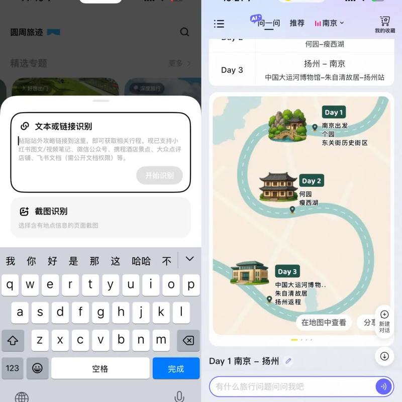 比如有用户提到会DeepSeek做前期攻略计划,后在配合圆周旅迹等产品,生成更详细的旅行规划,再根据实际出行情况,随机对地点进行排序。
