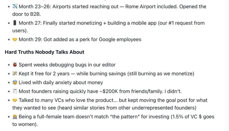 她提到团队面临的问题——每天都为钱焦虑,花了数周不断调试产品的错误,货币化之后仍在继续烧钱等。