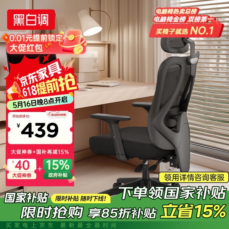黑白调P1人体工学椅限时特惠459元