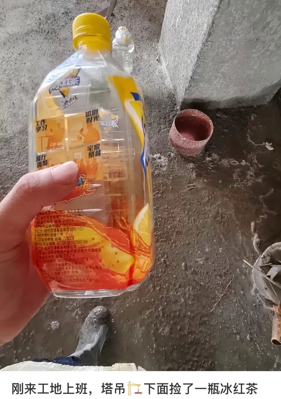 只要你靠近一处工地、来到塔吊的底下,地面上就极有可能刷新出一瓶冰红茶。
