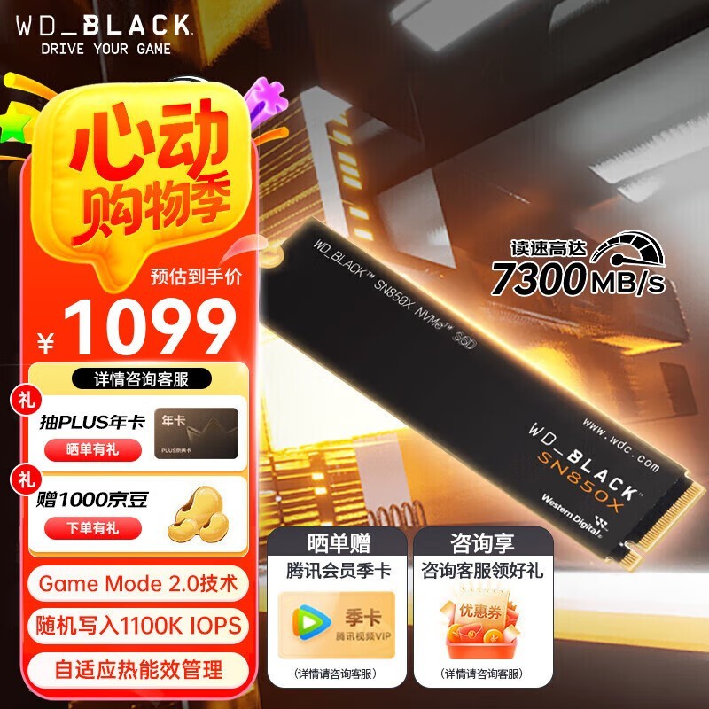 西部数据WD SSD SN850X 2TB京东促销价1129元