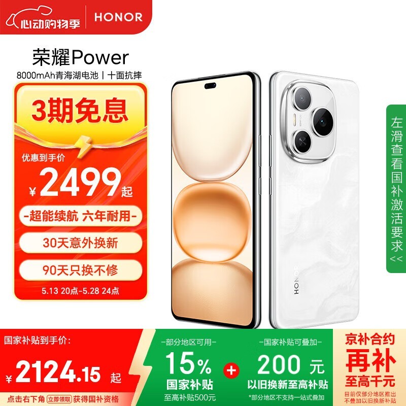 荣耀HONOR Power 5G手机12GB+512GB仅需2124元