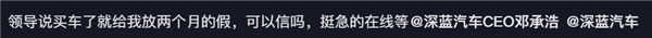 对于此番言论,发表该视频的网友称:领导说买车了就给我放两个月的假,可以信吗,挺急的在线等。