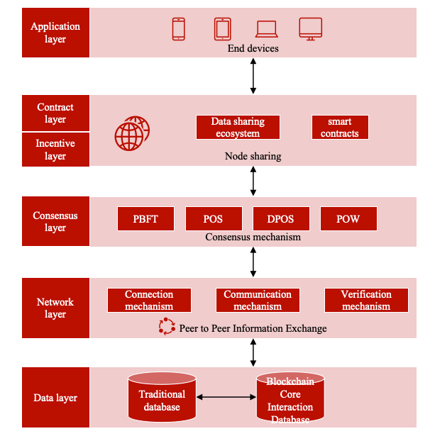 区块链由一系列数据块(Block)组成,每个数据块都包含了一定数量的交易信息,并通过哈希函数与前一个数据块相连,形成一条不断增长的链式结构。这种链式结构使得区块链上的数据具有不可篡改性和可追溯性,为资源共享追溯提供了可靠的技术支撑。微算法科技基于区块链的资源共享追溯方法采用分层架构,包括数据层、网络层、共识层、激励层、合约层和应用层。数据层负责数据的存储和加密;网络层负责节点间的通信和数据传输;共识层负责交易的验证和记账;激励层通过一定的奖励机制激励节点参与验证和记账;合约层支持智能合约的编写和执行;应用层则提供用户接口和服务。采用云计算和区块链技术相结合的方式实现。通过云计算平台提供计算资源和存储资源;通过区块链技术构建分布式账本和共识机制;通过智能合约实现自动化交易和业务流程。系统部署在集团企业内部及合作伙伴的服务器上,实现数据的实时同步和共享。