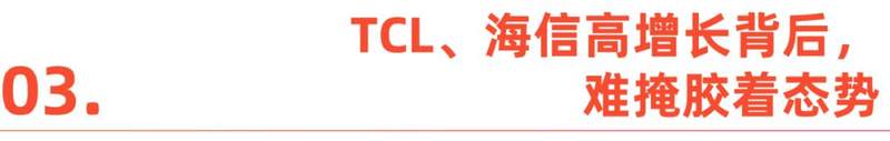 尽管TCL和海信在业绩上均有不错的表现,但可以明显看到,二者在打法上近乎一致,比如将两家技术摆在一起来比较,各家主推的产品并没有出现革命性的突破,而且在市场开拓及营销方向上,也呈现出趋同的手法。