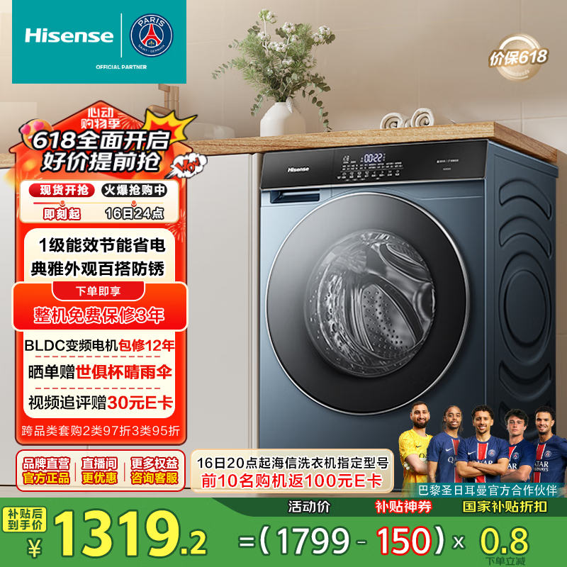 海信滚筒洗衣机10公斤洗烘一体京东促销价968元