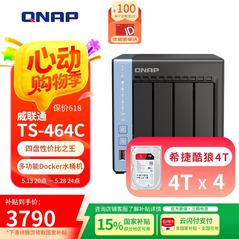 威联通TS-464C NAS家庭私有云存储服务器限时特惠