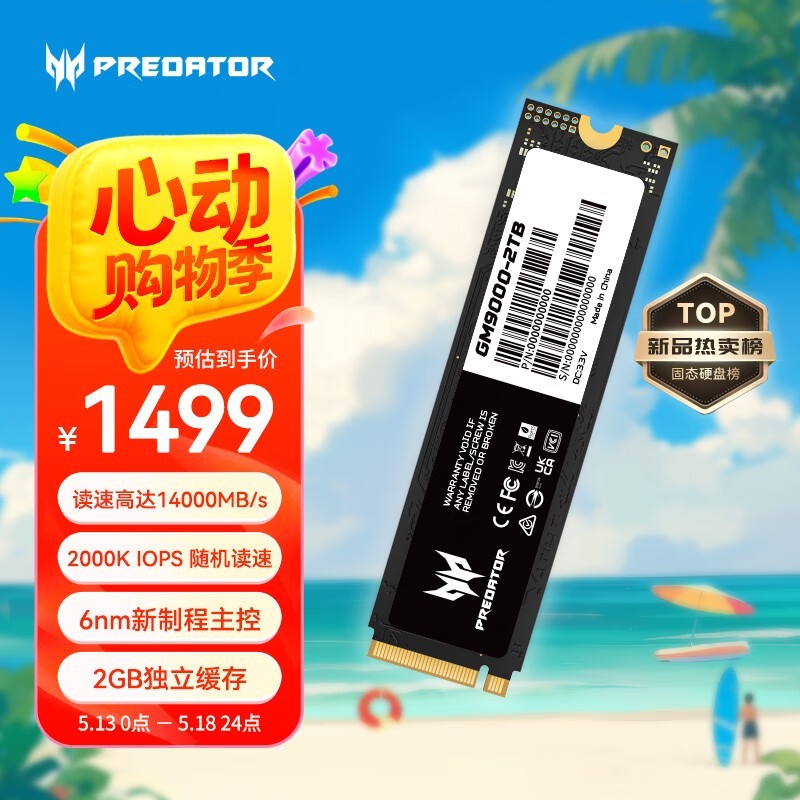 宏碁掠夺者GM9000 2TB固态 1341元可入手