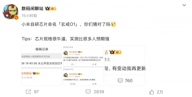 除了手机之外,小米平板也会搭载玄戒 O1 芯片,产品名会带有“15周年纪念版”的后缀。